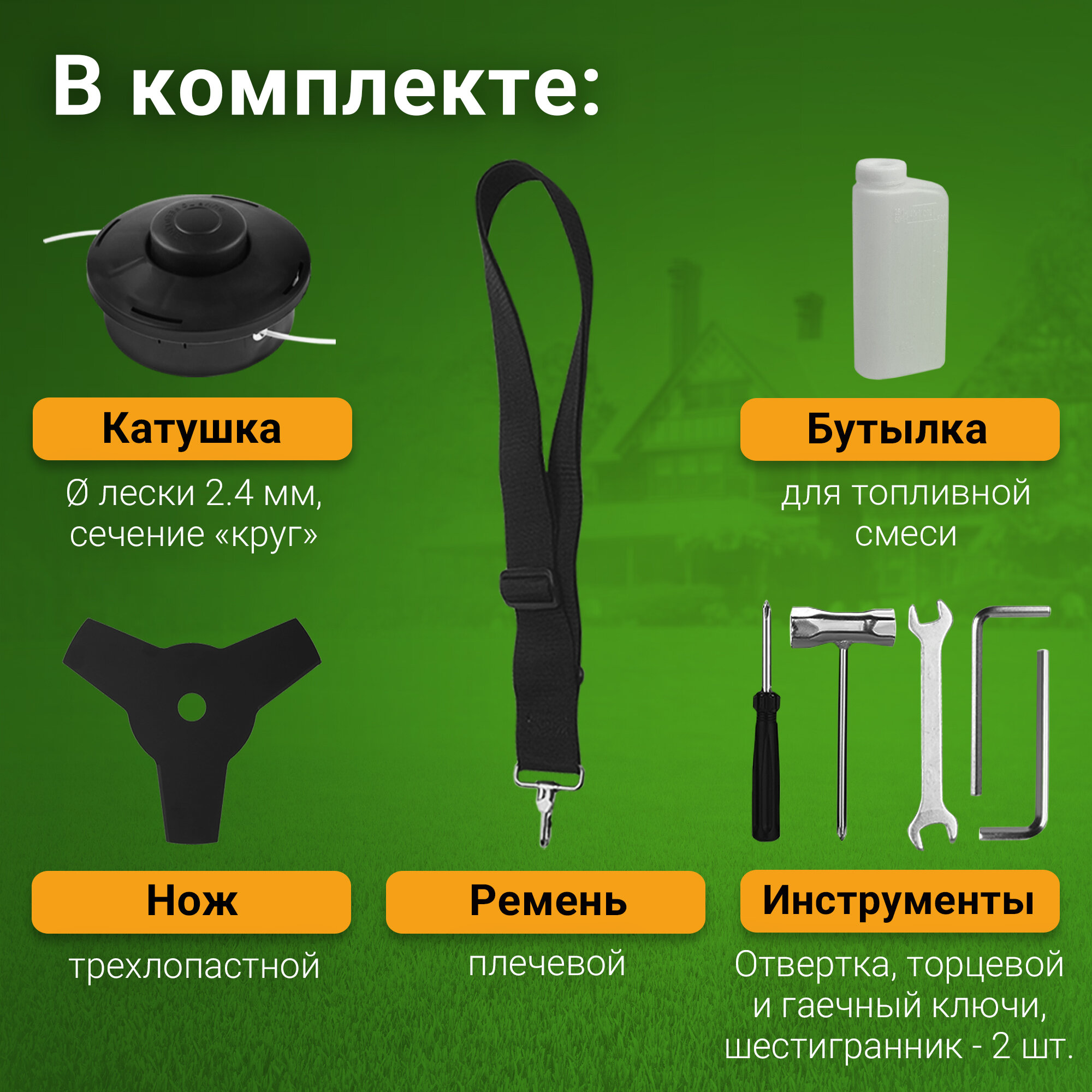 Триммер бензиновый DEKO DKTR52 SET 9, 2200Вт, 3000-8500 об/мин, леска/нож 9 774 ₽
