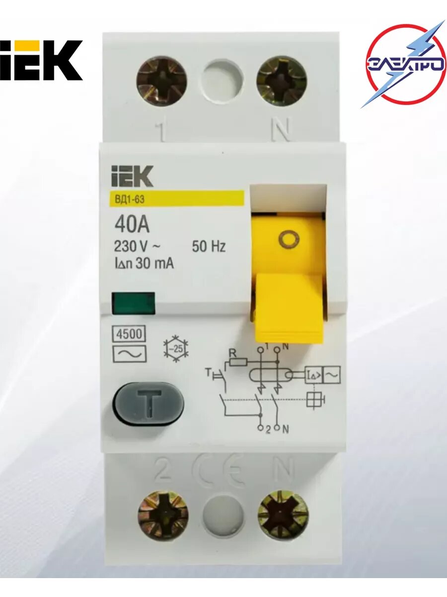 Выключатель дифференциальный (УЗО) ВД1-63 2Р 40А 30мА IEK информация:
