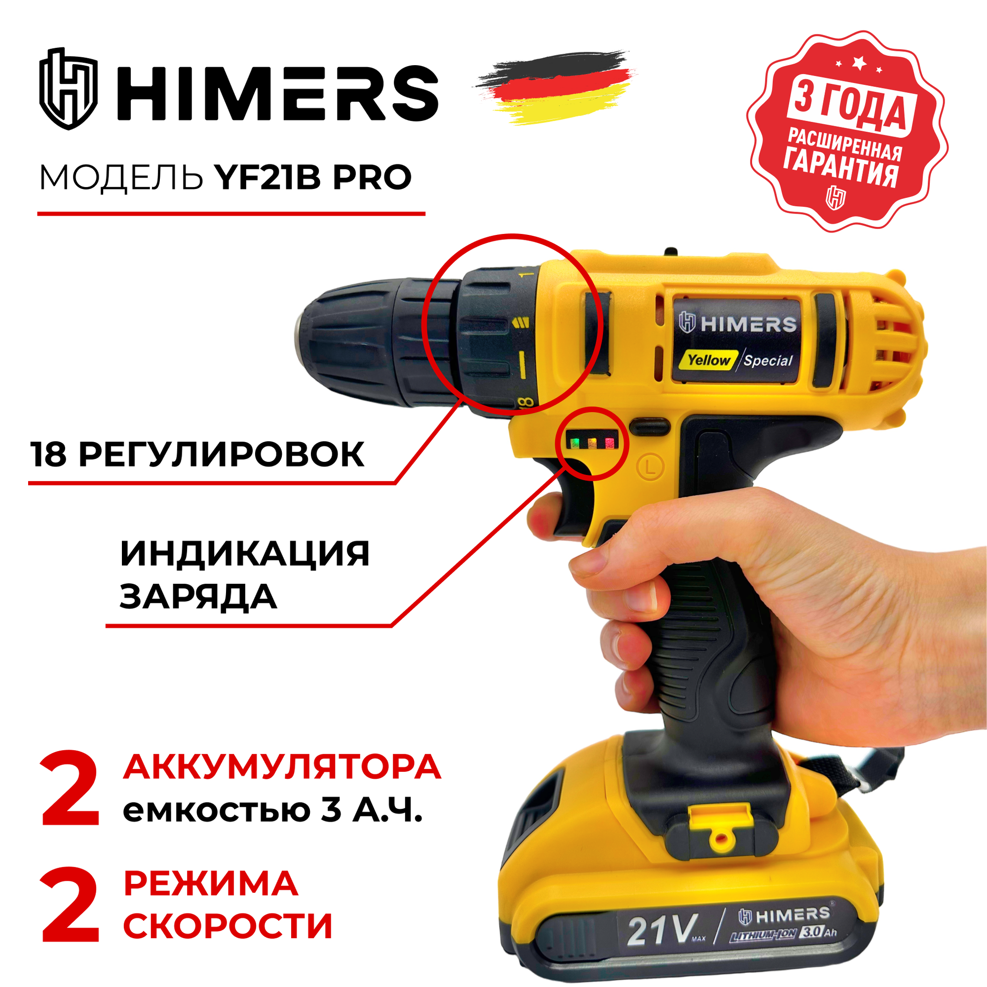 Отзывы на Дрель - шуруповерт HIMERS DF60Y PRO аккумуляторный 21V, 2 АКБ, 60 Н.м / Версия Yellow special / Кейс с набором бит, свёрел, головок инструментов 107 предметов / для сверления, долбления, закручивания 21В