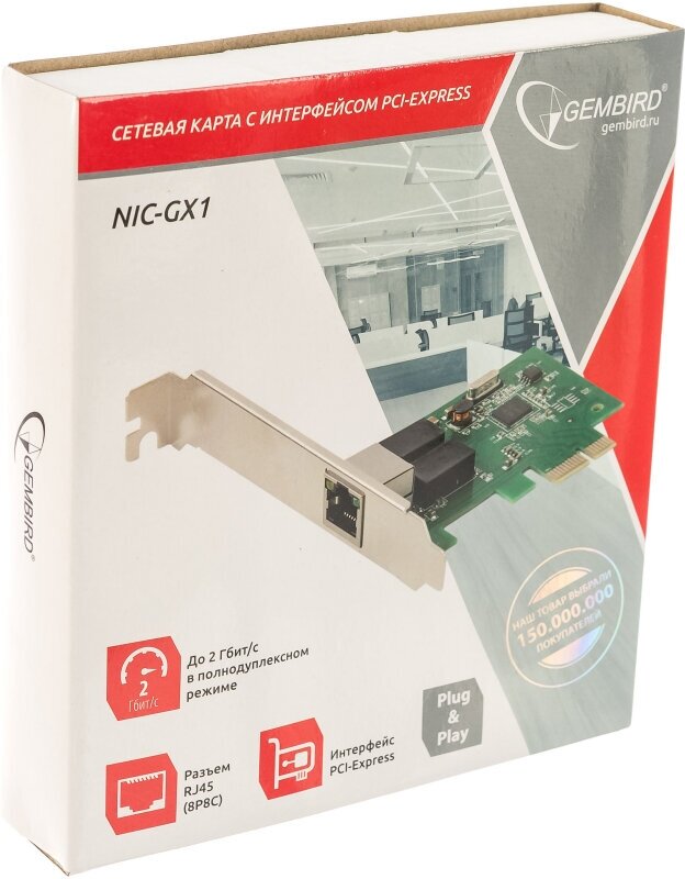 Отзывы на Сетевой адаптер Ethernet Gembird NIC-GX1 1000/100/10, PCI-express, чипсет RTL8111C