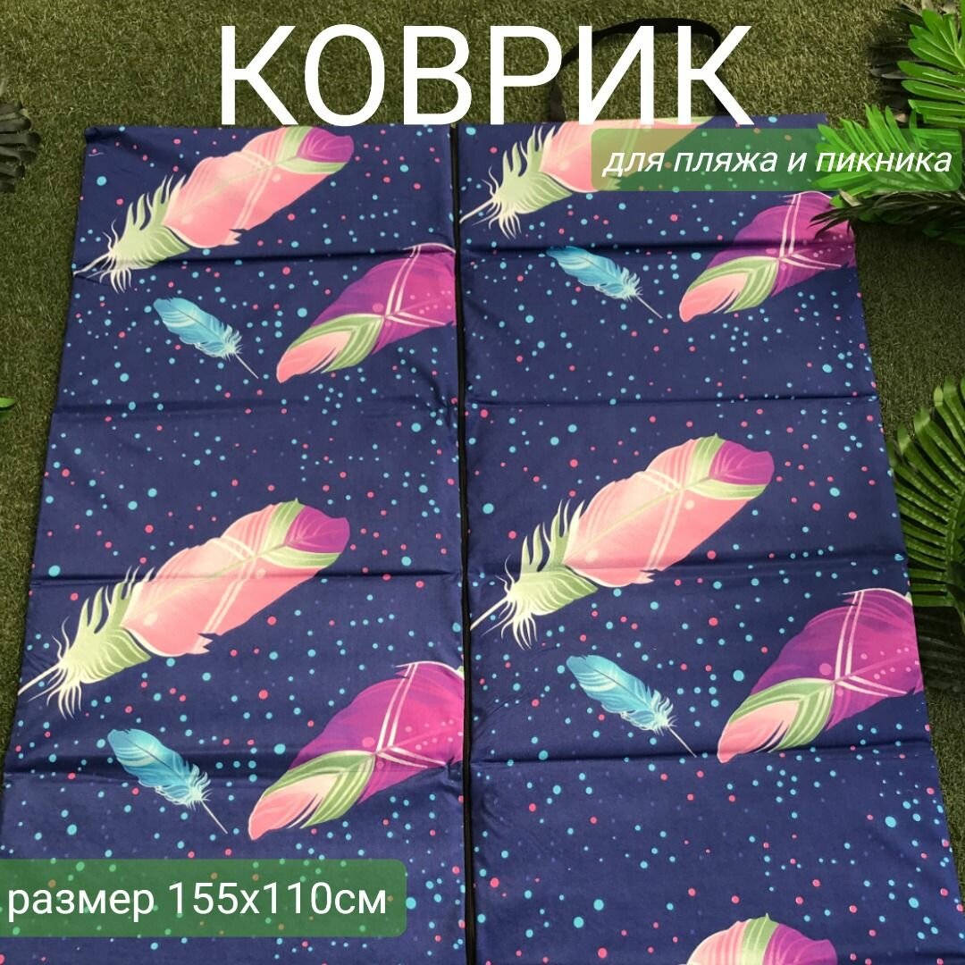 Коврик двойной на молнии 155x(55+55)x1,0 см, 6 сложений, наполнитель пенка, Перья 3D, арт. 1166 информация: