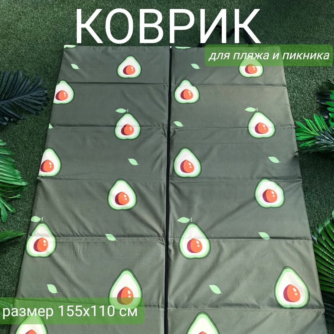 Коврик двойной на молнии 155x(55+55)x1,0 см, 6 сложений, наполнитель пенка, Авокадо хаки, арт. 1166 информация: