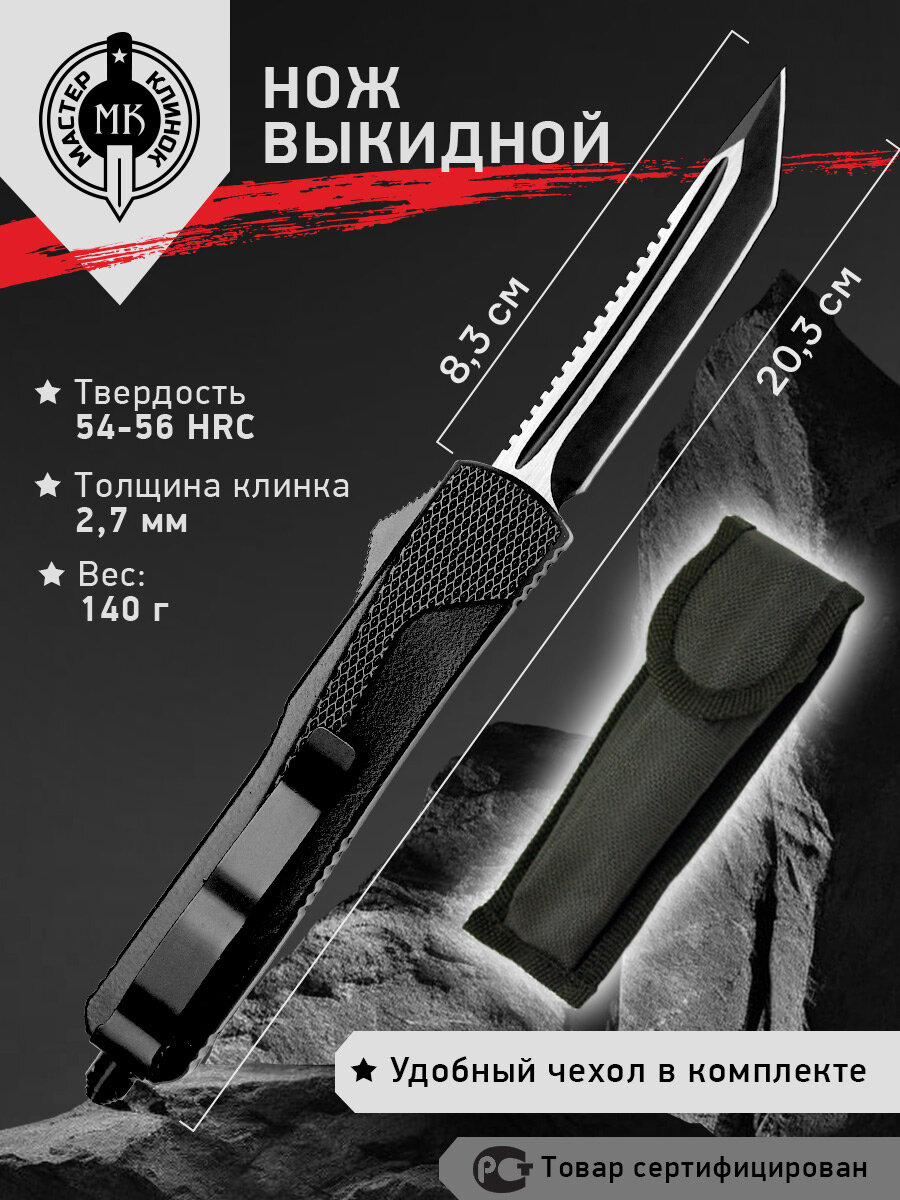 | Дополнительная информация | не относится к холодному оружию; марка стали: 420; твердость стали, HRC: 54-56; тип замка: Out-the-Front Double Auto; длина сложенного: 120.4 мм; чехол в комплекте |
