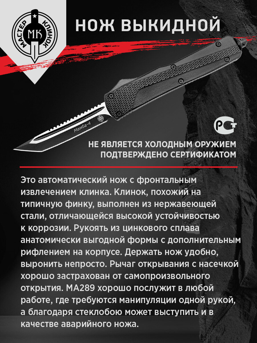 0 отзывов, средняя оценка 0. Чтобы купить «Нож складной Мастер Клинок MA289 (Мамба-4), сталь 420» по лучшей цене мы сканируем авито, алиэкспресс, маркет, озон, савеловский, плеер, горбушку, беру, официальные сайты и находим минимальную. Администрация не несет ответсвенность актуальность цен на Нож складной Мастер Клинок MA289 (Мамба-4), сталь 420, более подробно узнавайте на сайте магазина.