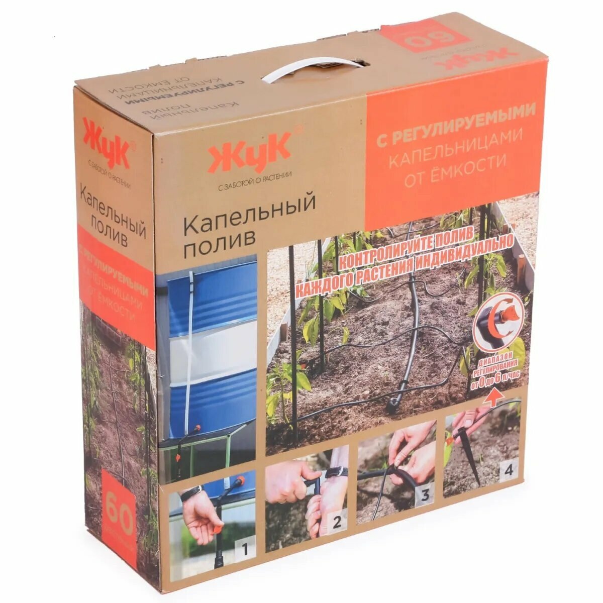 Набор капельного полива от ёмкости, с регулируемыми капельницами, 60 растений, «Жук» информация: