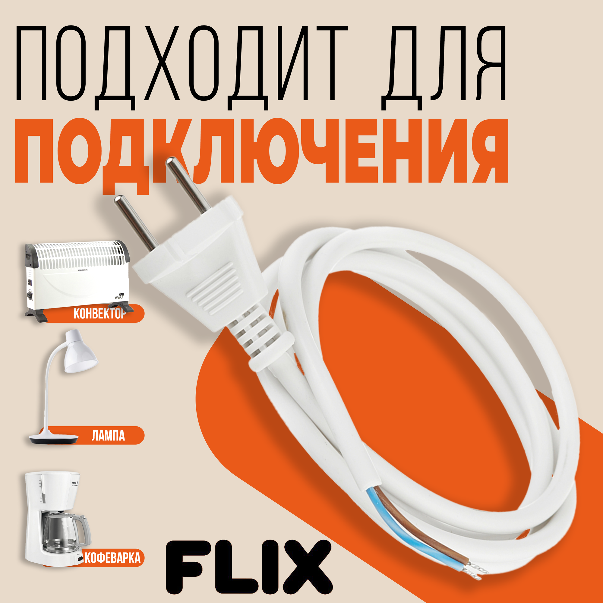 10 цен на Сетевой шнур с вилкой без заземления 6А 1,5 м цвет белый FLIX