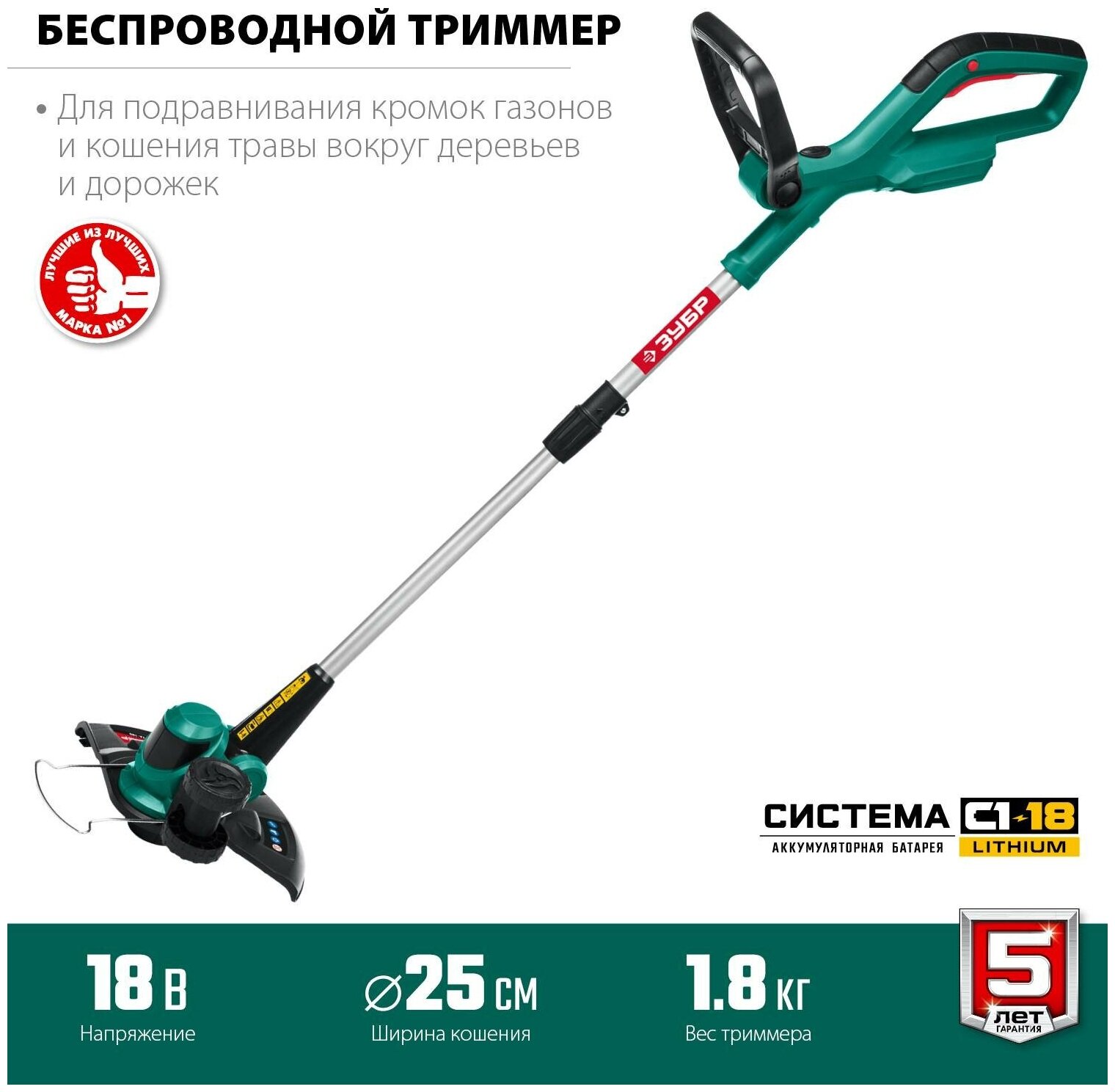 ЗУБР С1-18, 18 В, 25 см, без АКБ, аккумуляторный триммер (ТА-185)
