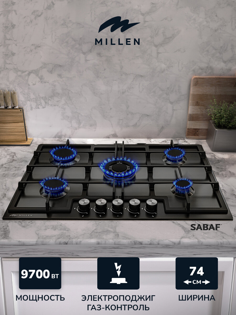 Отзывы на Варочная панель встраиваемая, газовая MILLEN MGHD 7501 BL, черный, ширина 75 см, 5 конфорок, материал поверхности: эмаль, материал решёток: чугун, электроподжиг, газ-контроль