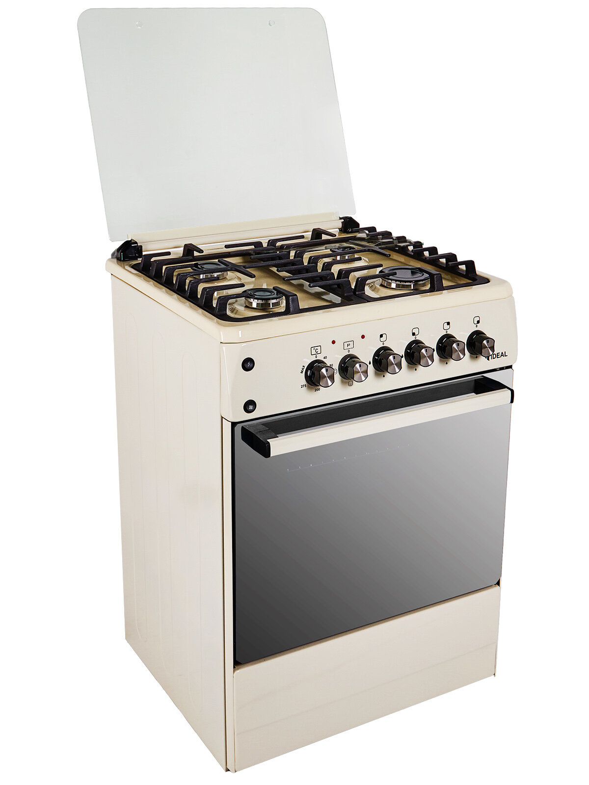 Комбинированная плита IDEAL L 265 молочная 60 см, газовые конфорки, духовка электрическая с конвекцией, чугунные решетки, электроподжиг информация: