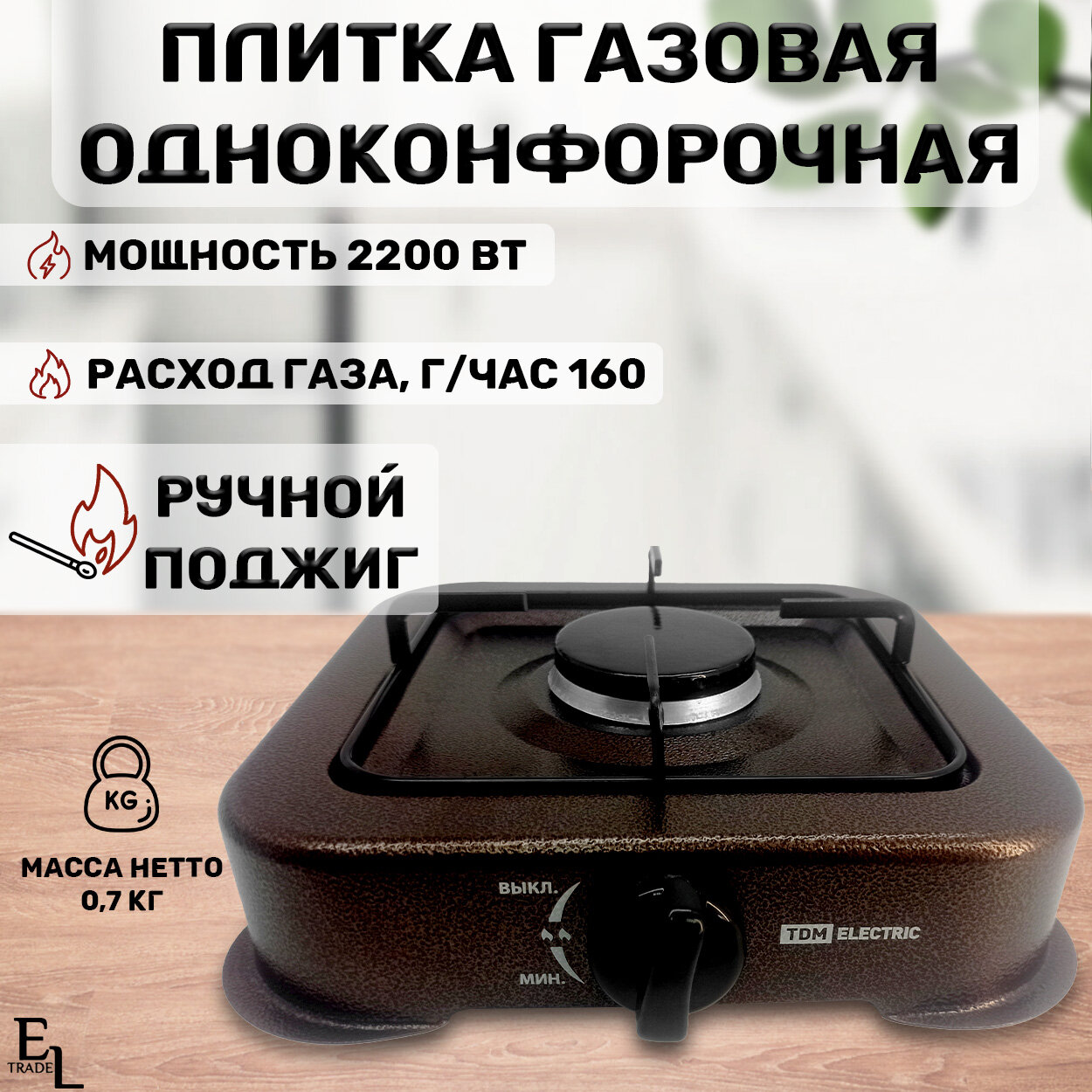 Плитка газовая одноконфорочная ГП-1 коричневая информация: