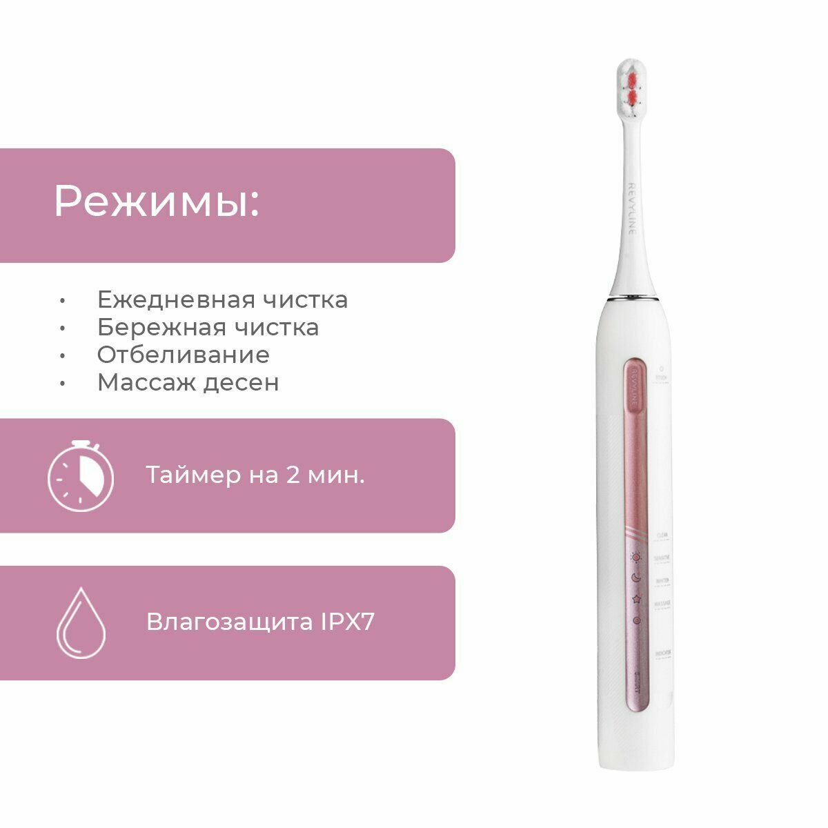 Электрическая зубная щетка Revyline RL085, 5 режимов, 3 насадки, IPX8, белая