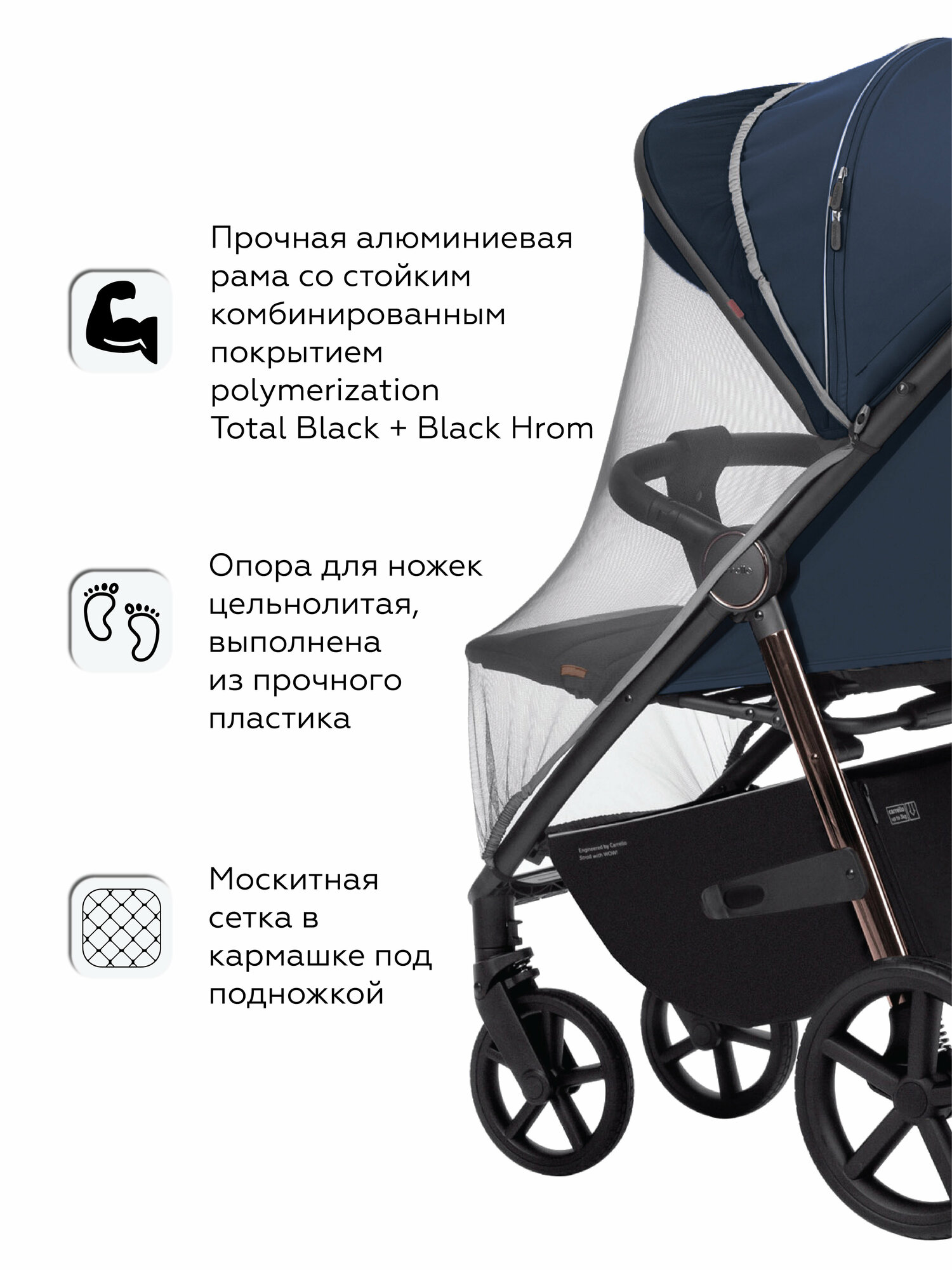 | Аксессуары в комплекте | антимоскитная сетка, бампер, держатель для бутылочки, капюшон, накидка на ноги, солнцезащитный козырек |