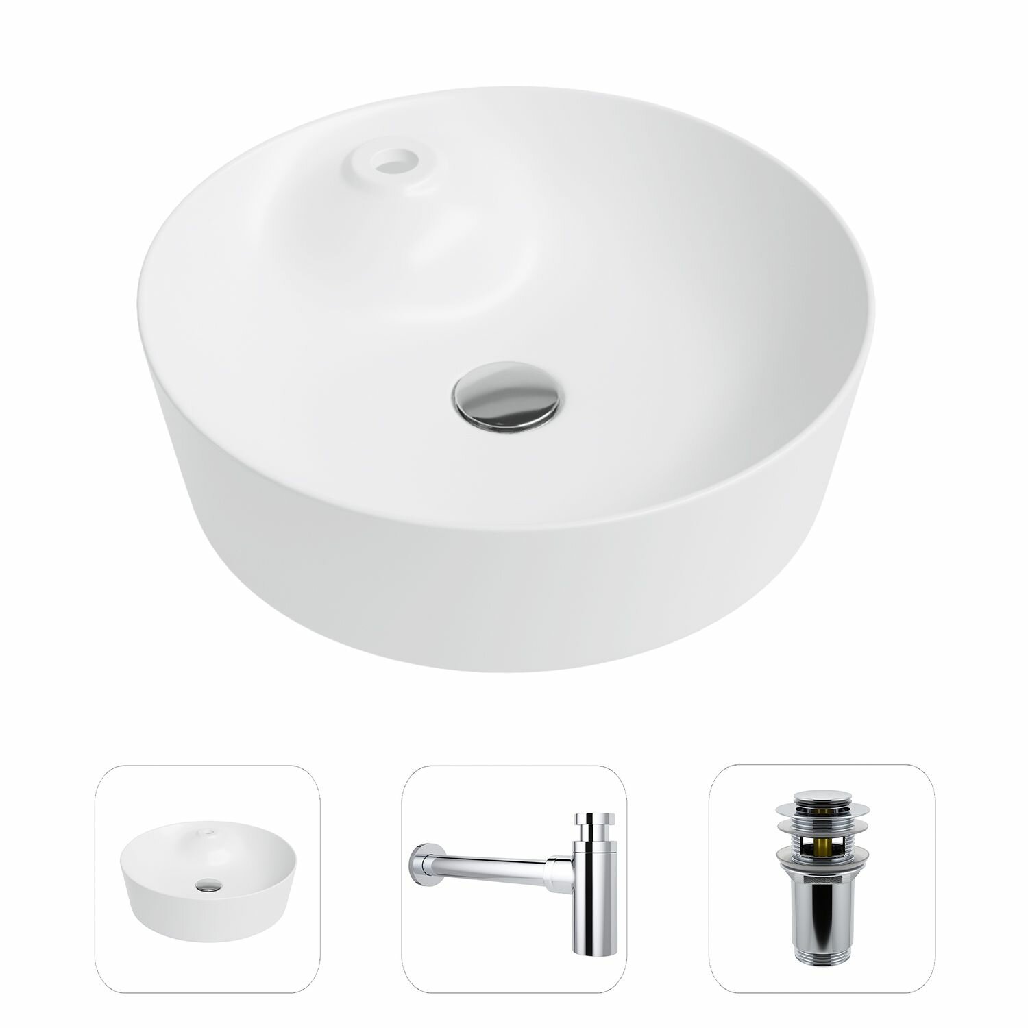 Накладная раковина в ванную Helmken 49444000 комплект 3 в 1: умывальник круглый 44 см, сифон и донный клапан click-clack в цвете белый, гарантия 25 лет 17 117 ₽