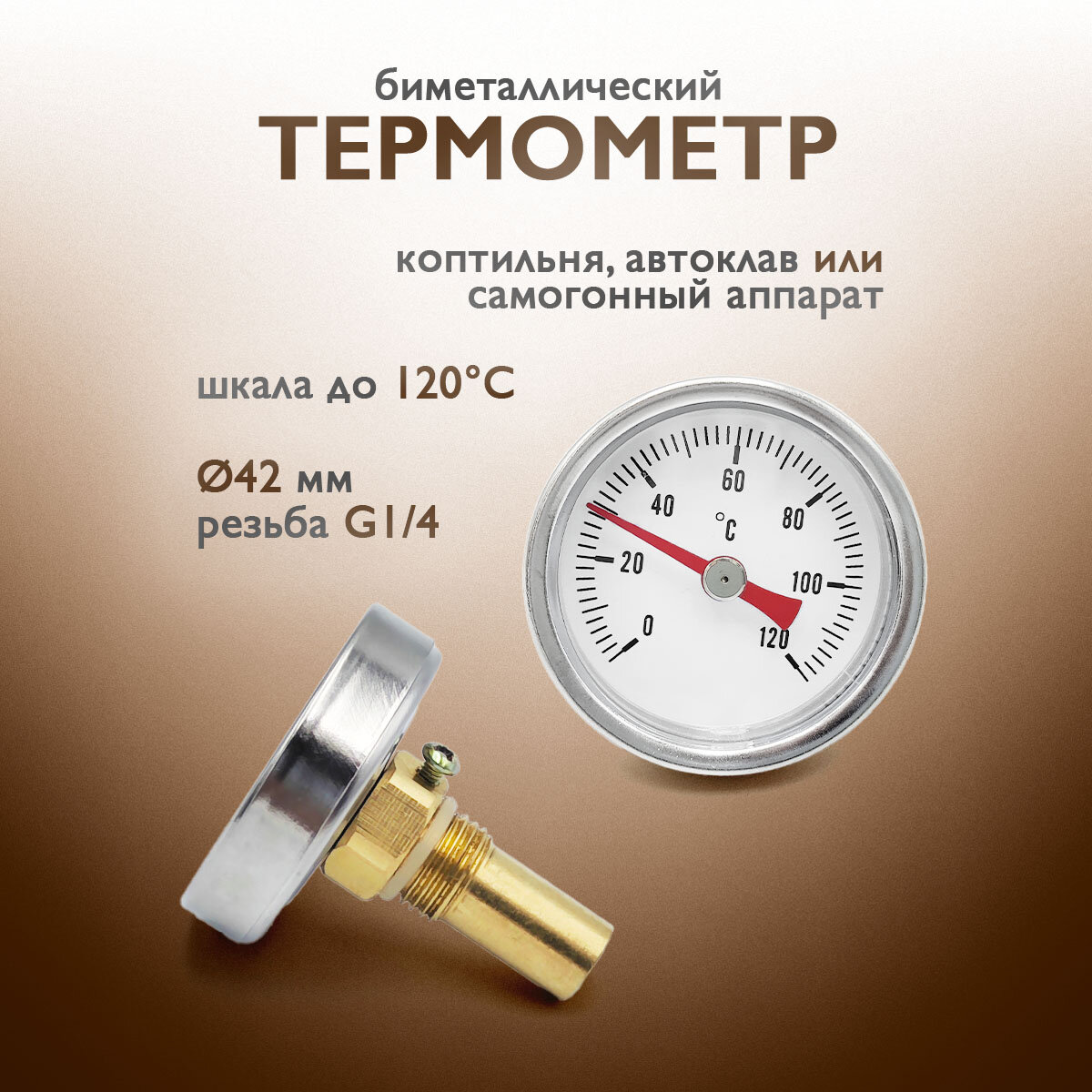 Термометр для коптильни, самогонного аппарата, автоклава (42мм) информация:
