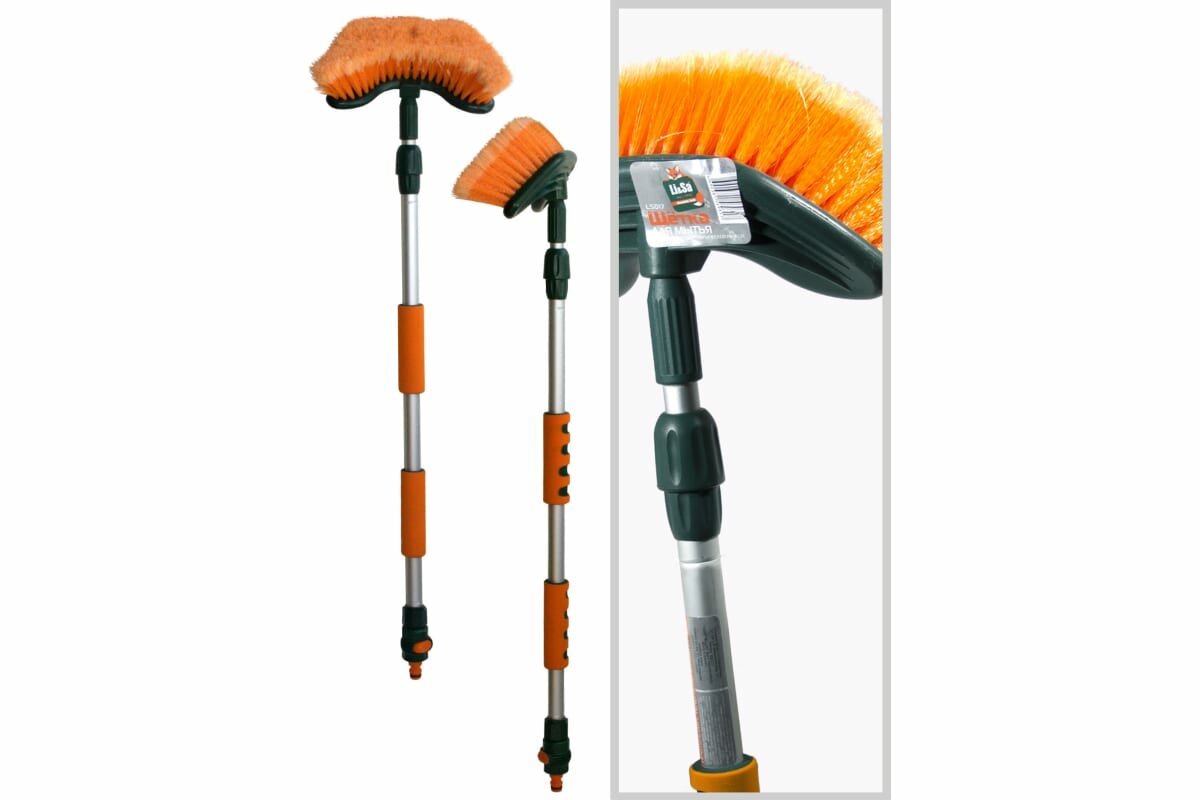 Щетка для мытья "Li-Sa" LS013 телескопическая, проточная ручка с запорным краном, 94-160см