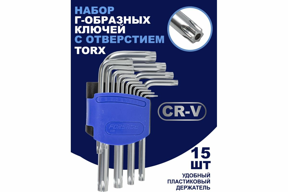 Набор ключей Г-образных TORX с отверстием,15пр.(Т6Н,T7H,T8H,T9H,Т10Н,Т15Н,Т20Н,Т25Н,Т27Н, Т30Н,Т40Н, FORSAGE F5151T (1 шт.)