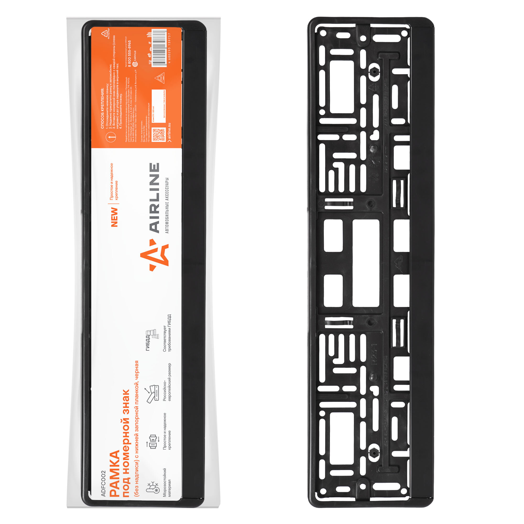 AIRLINE ADFC002 Рамка под номерной знак, двусоставная, евро-книжка (без надписи), черная (ADFC002) AIRLINE ADFC002