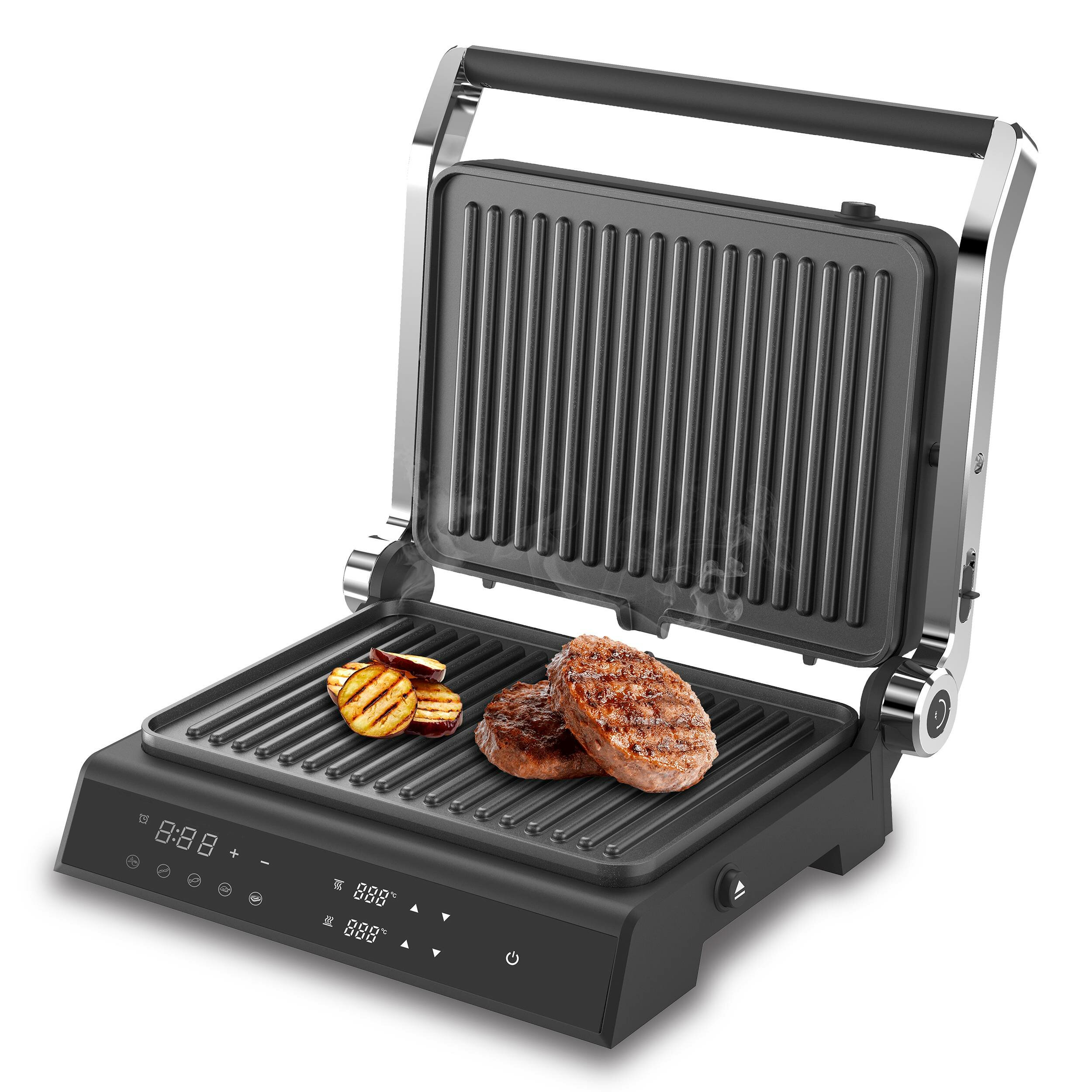 | Дополнительная информация | 4 в 1: гриль/барбекю/запекание/сэндвич-тостер, авторегулировка высоты верхней панели, 5 автоматических программ + ручной режим |