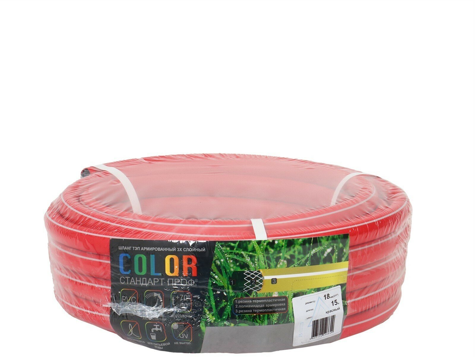 Шланг поливочный морозостойкий, ТЭП, 18 мм (3/4"), 15 м, армированный, COLOR, красный информация: