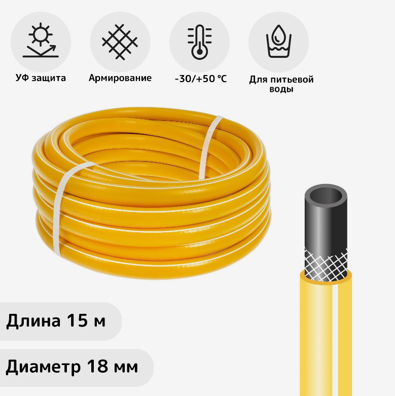 Шланг поливочный морозостойкий, ТЭП, 18 мм (3/4"), 15 м, армированный, COLOR, жёлтый информация: