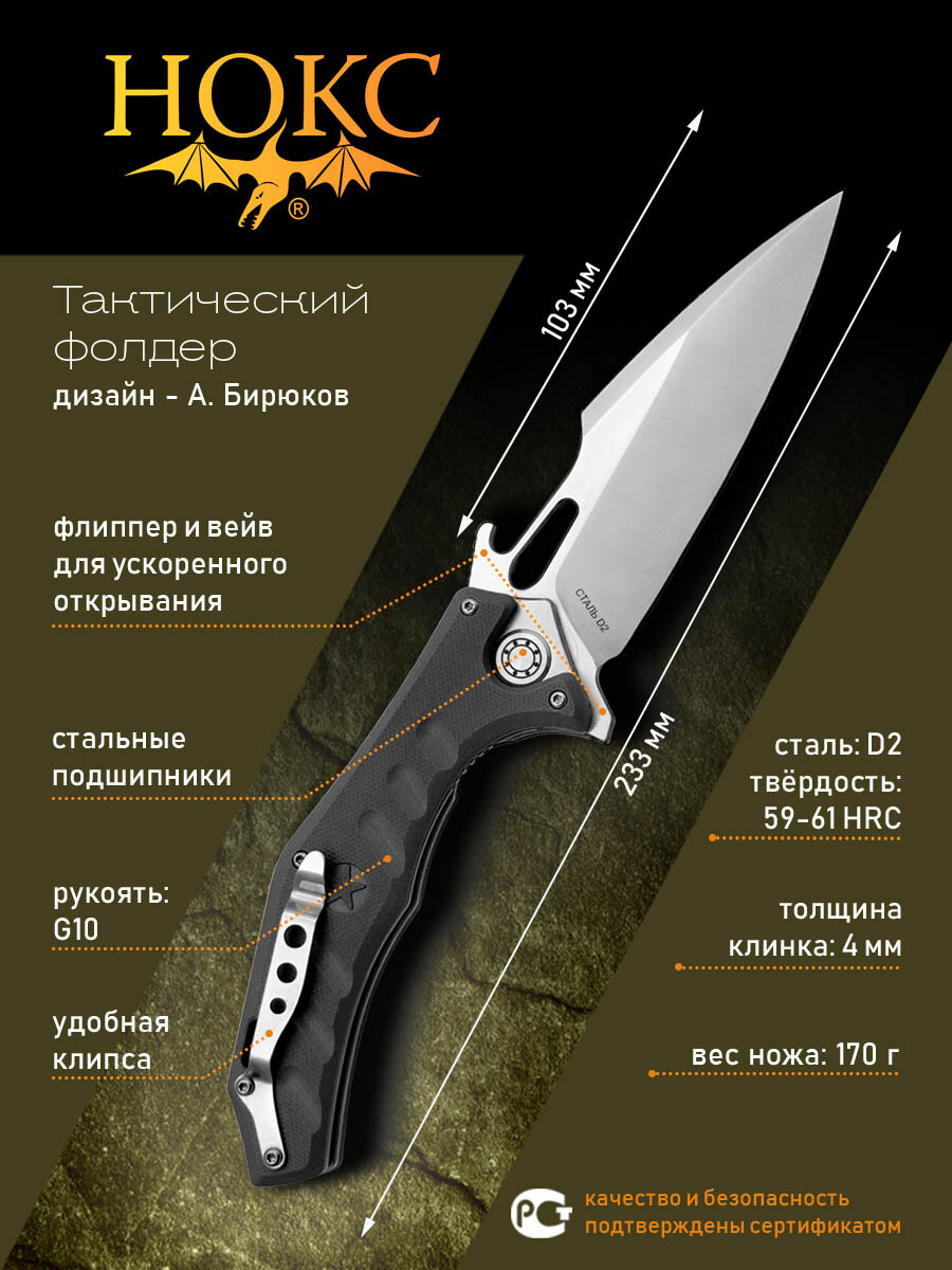 Нож складной нокс Мангуст-2C (337-100406) в подарочной коробке, тактический "фолдер", сталь D2