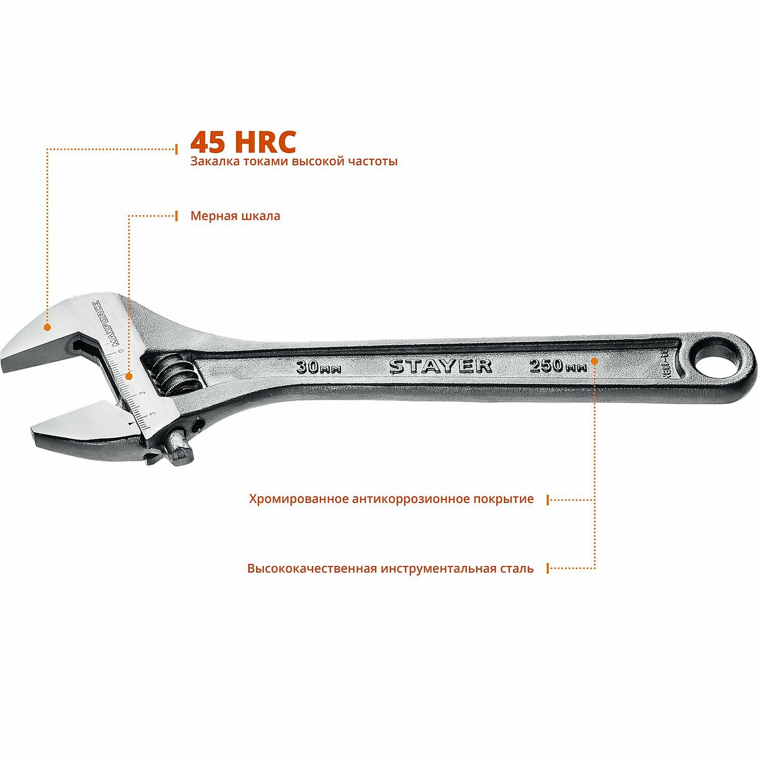 STAYER MAX-Force, 250/30 мм, разводной ключ (2725-25) информация:
