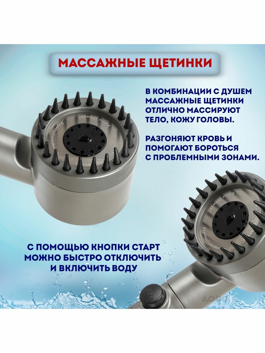 Лейка для душа массажная 3 режима со шлангом и держателем информация: