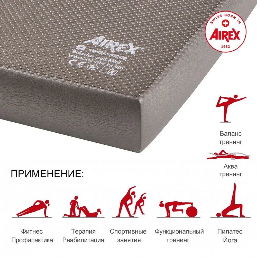 Балансировочная подушка AIREX Balance-pad Mini, 41х25х6 см., цвет серый информация: