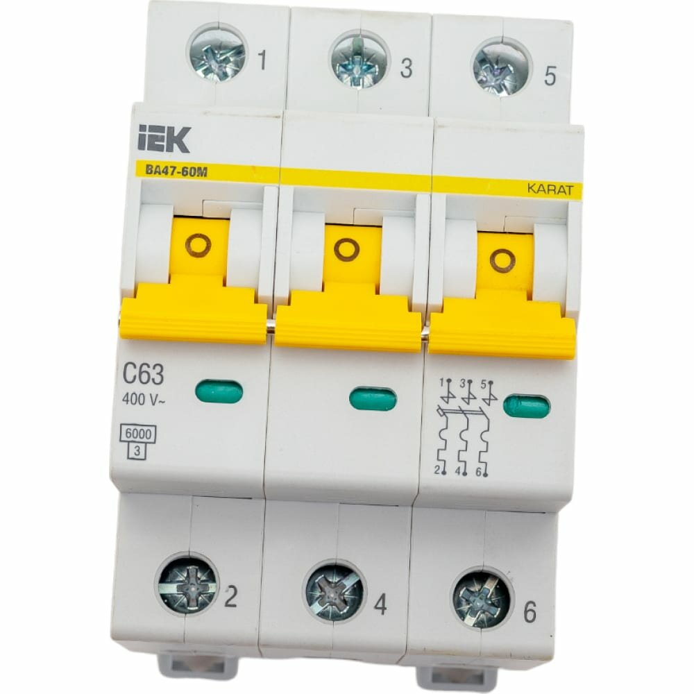 Отзывы на Выключатель автоматический модульный 3п C 63А 6кА ВА47-60M KARAT IEK MVA31-3-063-C