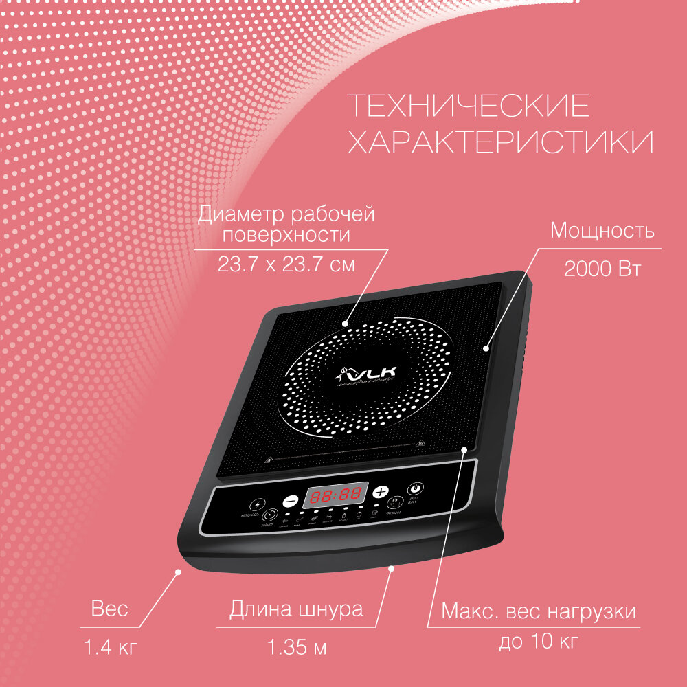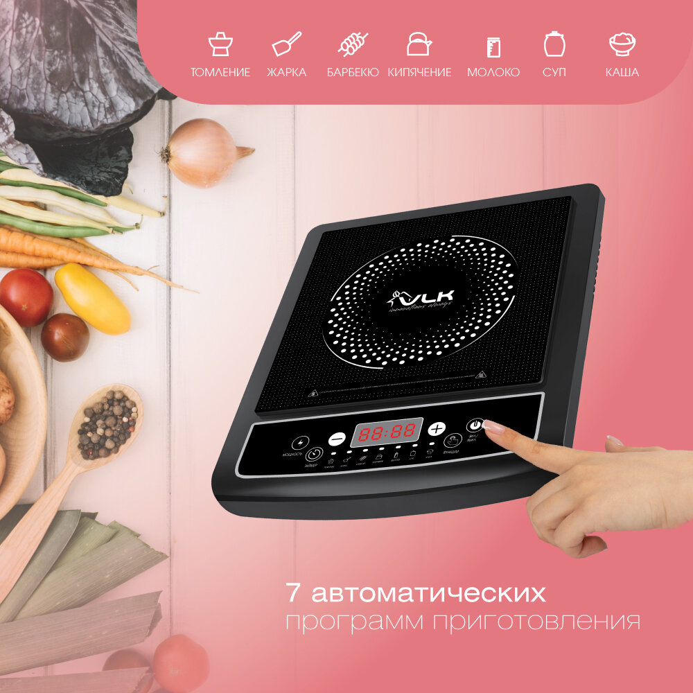 Индукционная плита настольная электрическая VLK Palermo-7726 / 2000 Вт / до 10 кг / до 240 градусов / 7 автоматических программ 3 210 ₽