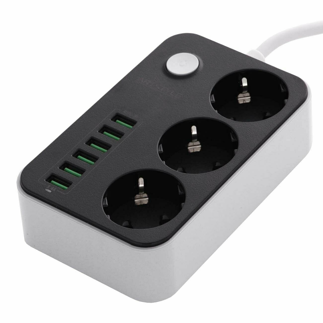 10 цен на Сетевой фильтр CL-3631B Черный, с функцией умной зарядки,3 роз. 2500Вт