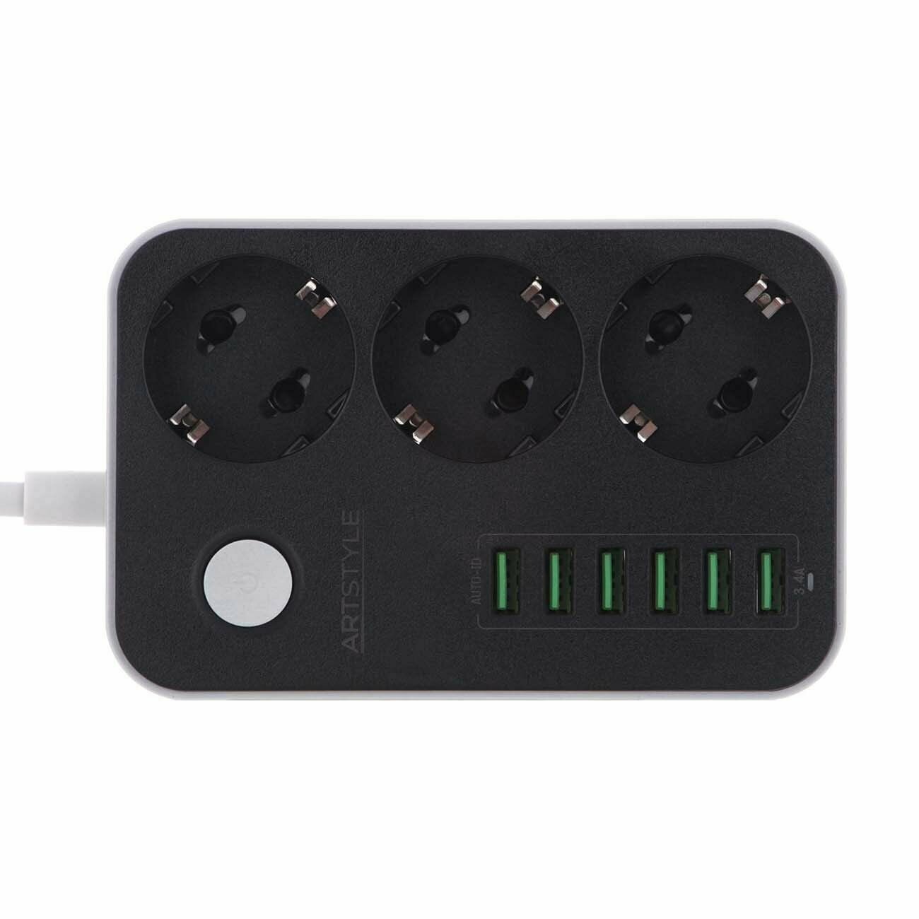 Сетевой фильтр ARTSTYLE 3 гнезда 6USB 1,6м черный