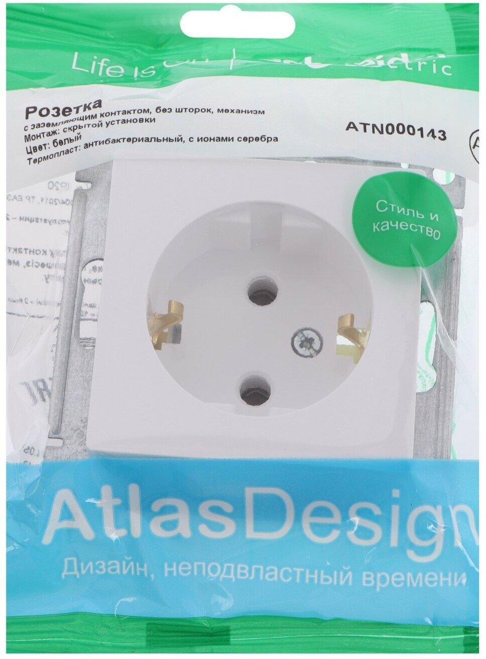 Розетка ATLASDESIGN, скрытый монтаж, с заземлением, белый | код. ATN000143 | Schneider Electric (6шт. в упак.)