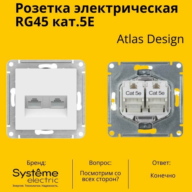 Отзывы на ATLASDESIGN Розетка двойная компьютерная RJ45+RJ45, кат.5E, механизм, белый Schneider Electric ATN000185