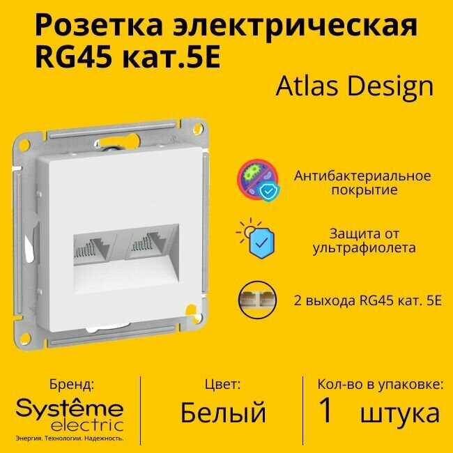 ATLASDESIGN Розетка двойная компьютерная RJ45+RJ45, кат.5E, механизм, белый Schneider Electric ATN000185 информация: