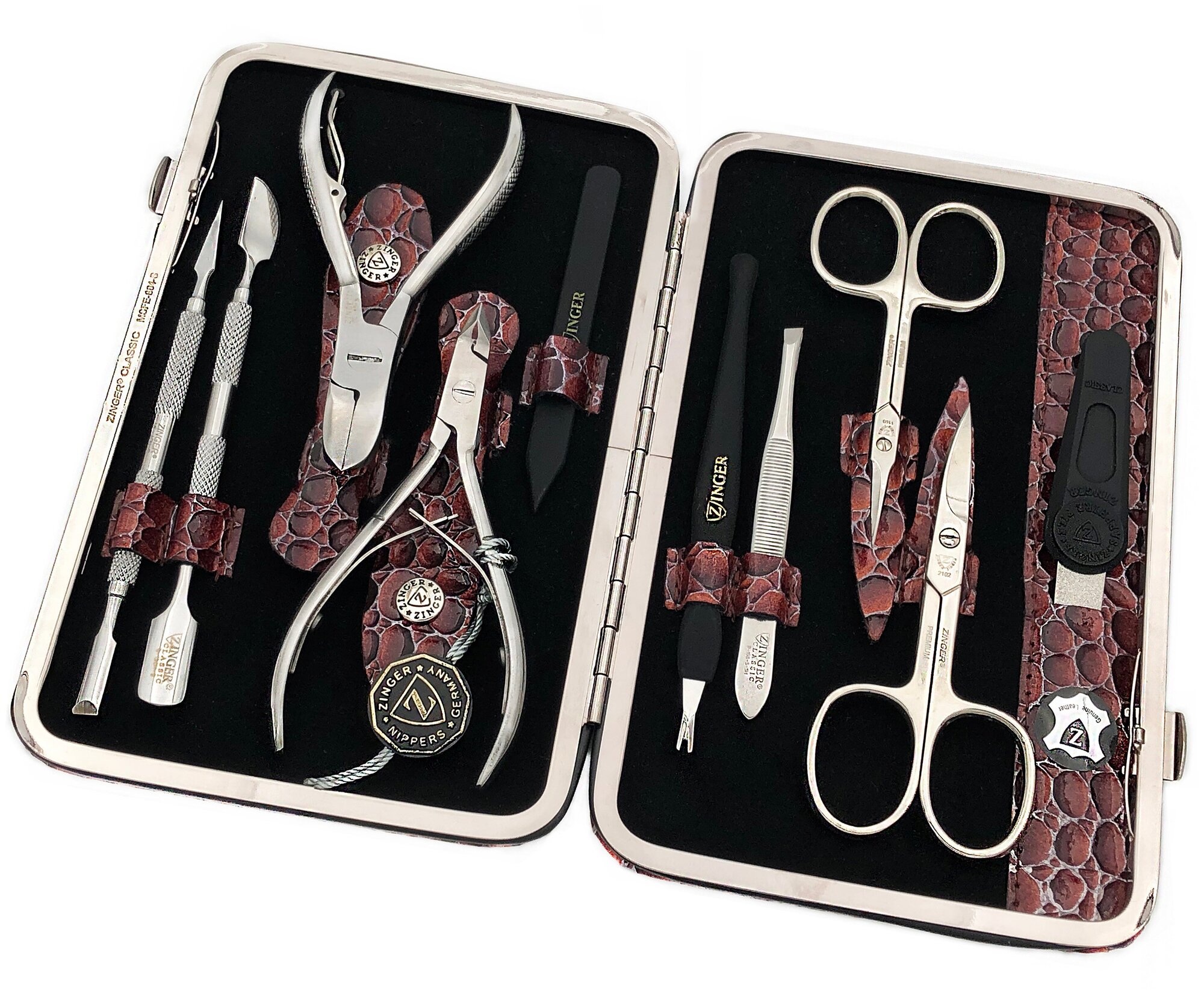 Маникюрный набор MSFE-804-3 S, ZINGER, 10 предметов, цвет коричневый крокодил 6 599 ₽