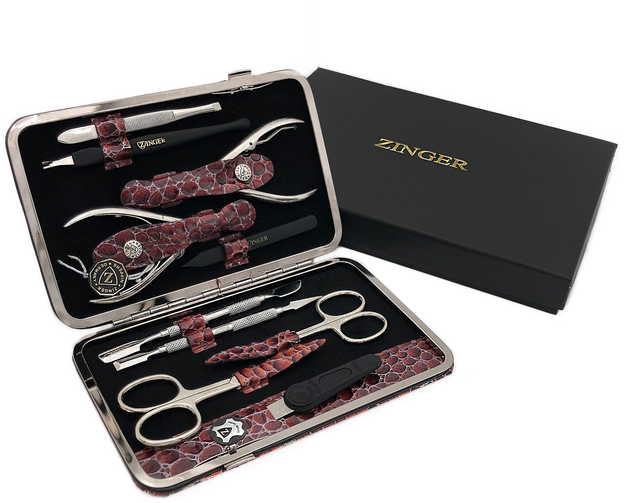 Маникюрный набор MSFE-804-S, ZINGER, 10 предметов, бордовый крокодил