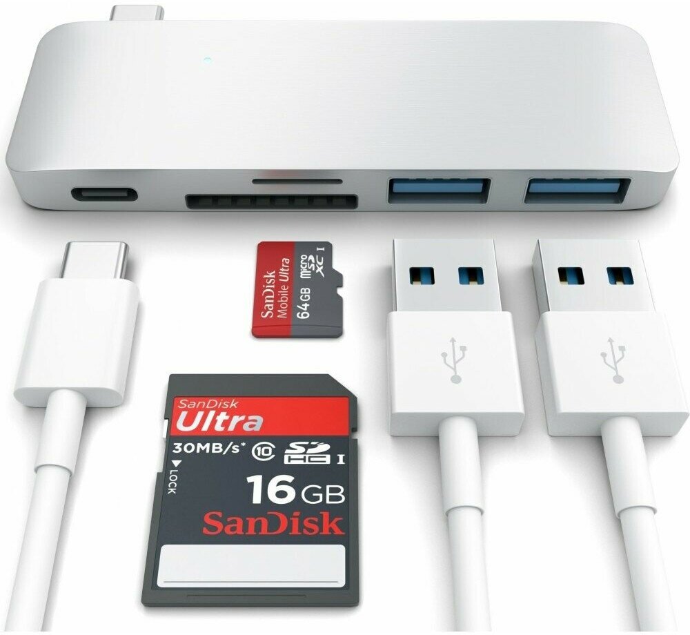 Отзывы на USB-хаб Satechi Type-C USB 3.0 Passthrough Hub для Macbook 12". Порты: 1x USB-C, 2 x USB 3.0, SD, microSD. Цвет серебряный.