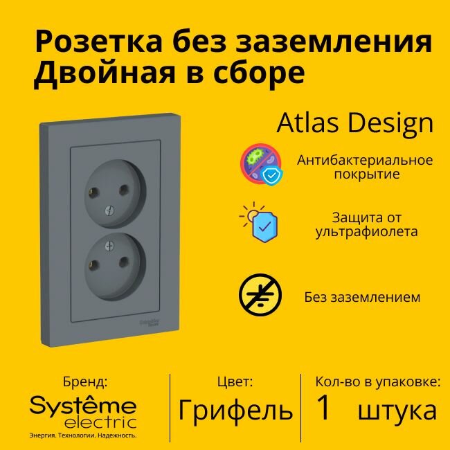 Отзывы на Systeme Electric AtlasDesign Грифель Розетка б/з двойная, 16А, в сборе ATN000720
