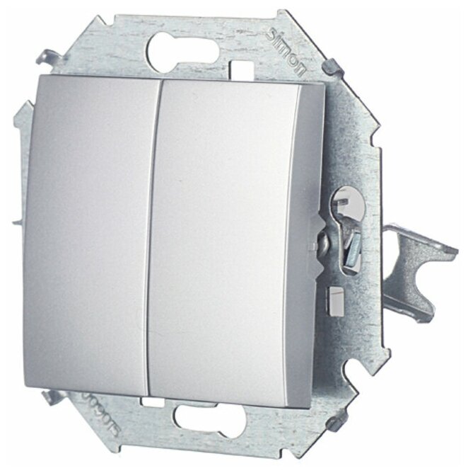 (Выключатель двухклавишнный проходной (переключатель), 16А, 250В, винтовой зажим, алюминий) SIMON 1591397-033 (1 шт.) информация: