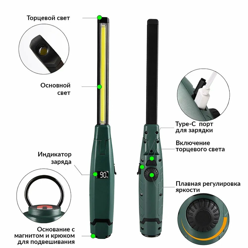 Фонарик ручной аккумуляторный светодиодный/фонарь переносной для ремонта автомобиля/ручной прожектор с магнитом