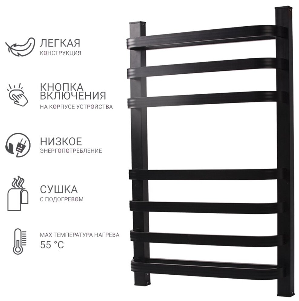 Полотенцесушитель электрический Маргроид В10 30х80, таймер, черный матовый