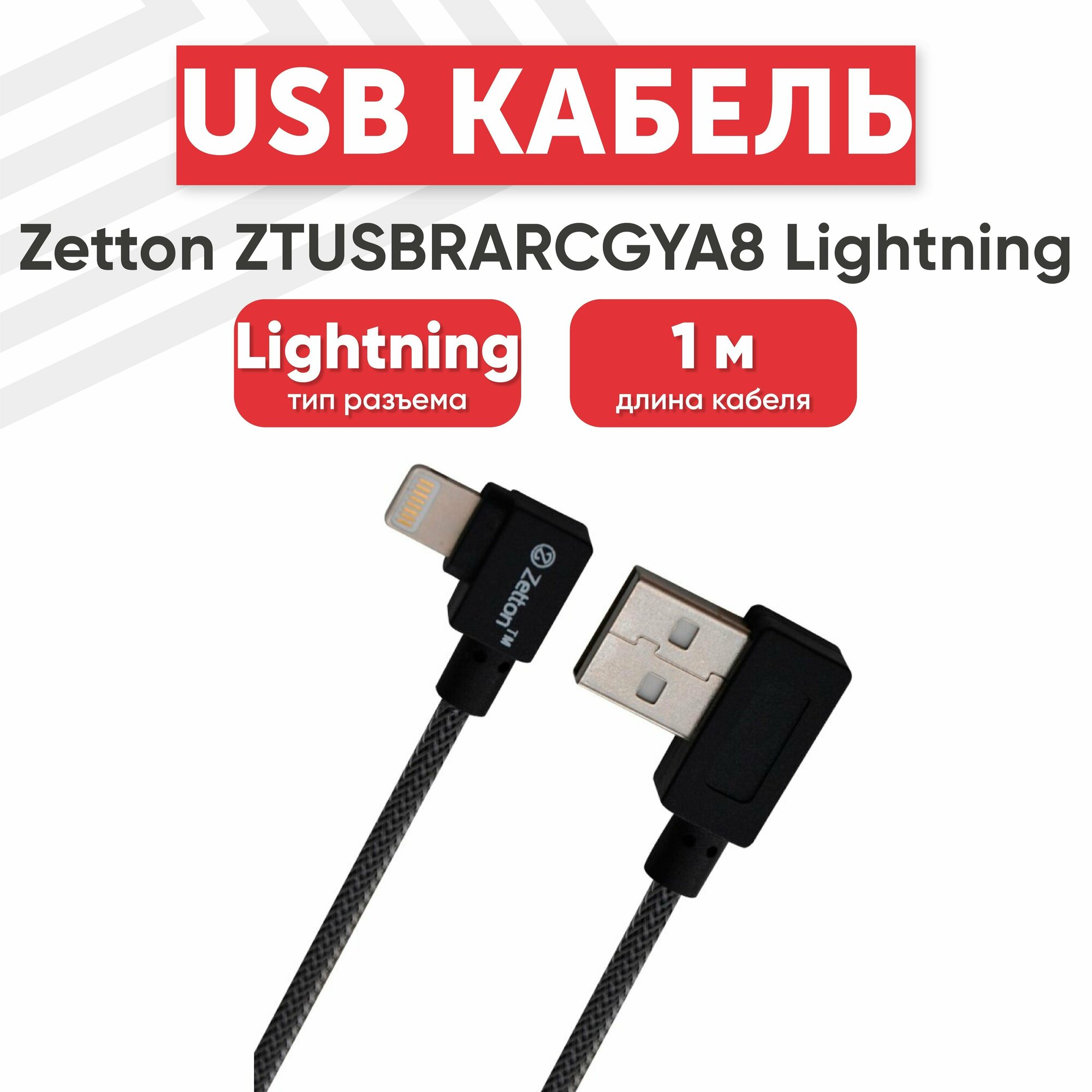 10 цен на USB кабель Zetton USB SyncCharge RoundArmor Corner Data Cable USB to Lightning серый (ZTUSBRARCGYA8)