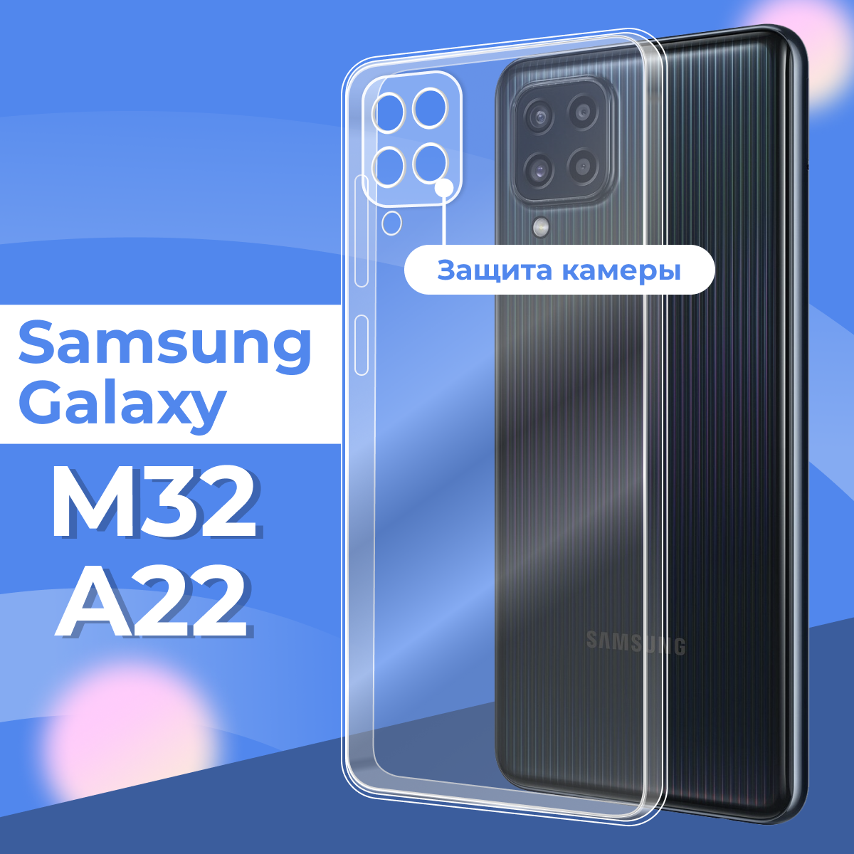 Ультратонкий силиконовый чехол для телефона Samsung Galaxy A22 4G и M32 с защитой камеры / Прозрачный защитный чехол для Самсунг Галакси А22 4 Джи и М32 информация: