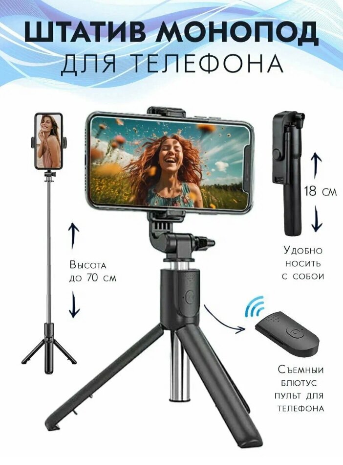 Монопод-трипод для селфи R1S, встроенный штатив трипод с регулируемым держателем для телефона и Bluetooth пультом