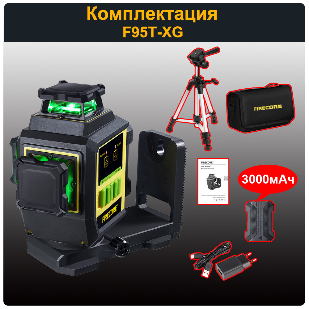 Лазерный уровень/нивелир FIRECORE F95T-XG 12 Линий,Зеленый луч,Тканевый мешок,с встроенным L-образным магнитным кронштейном,и штатив 1 м информация: