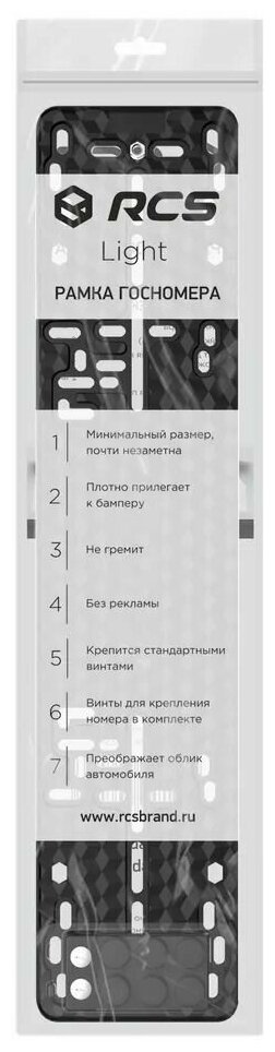 Рамка номерного знака RCS LIGHT 2.0 чёрная ( пла RCS R0202 информация: