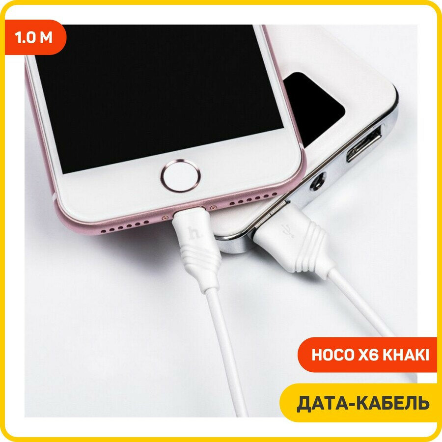Кабель USB - Lightning 1м Hoco X6 Khaki - Белый информация: