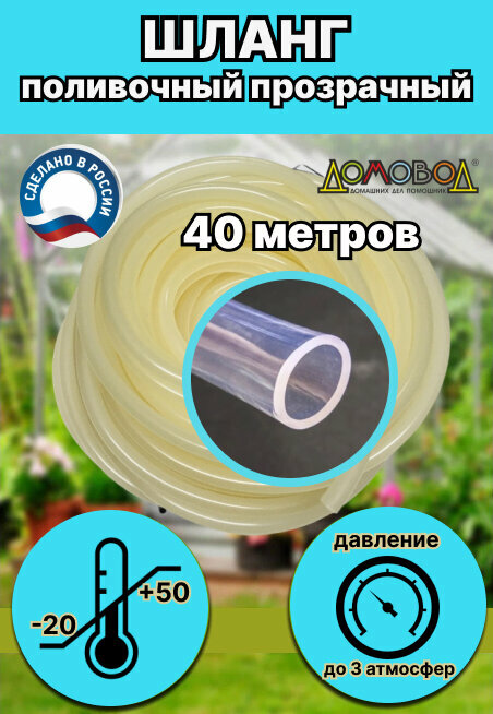 Шланг силиконовый поливочный прозрачный d 16мм 40 метров (толщина стенки 2,5мм) всесезонный ДомовоД ШСП16/2,5-40 ( 40 метров)