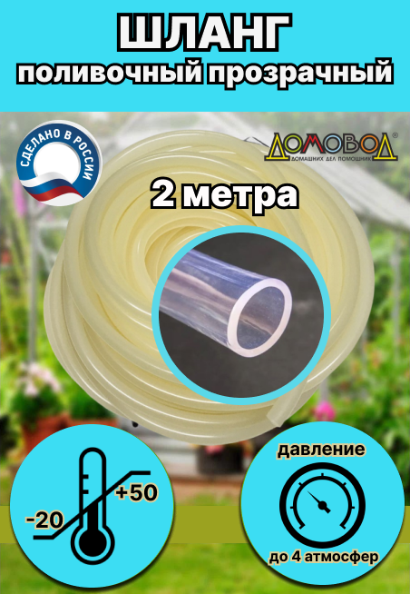 Шланг силиконовый поливочный прозрачный d 18мм 2 метра (толщина стенки 3мм) всесезонный прочный легкий современный ДомовоД ШСП18/3-2 ( 2 метра)